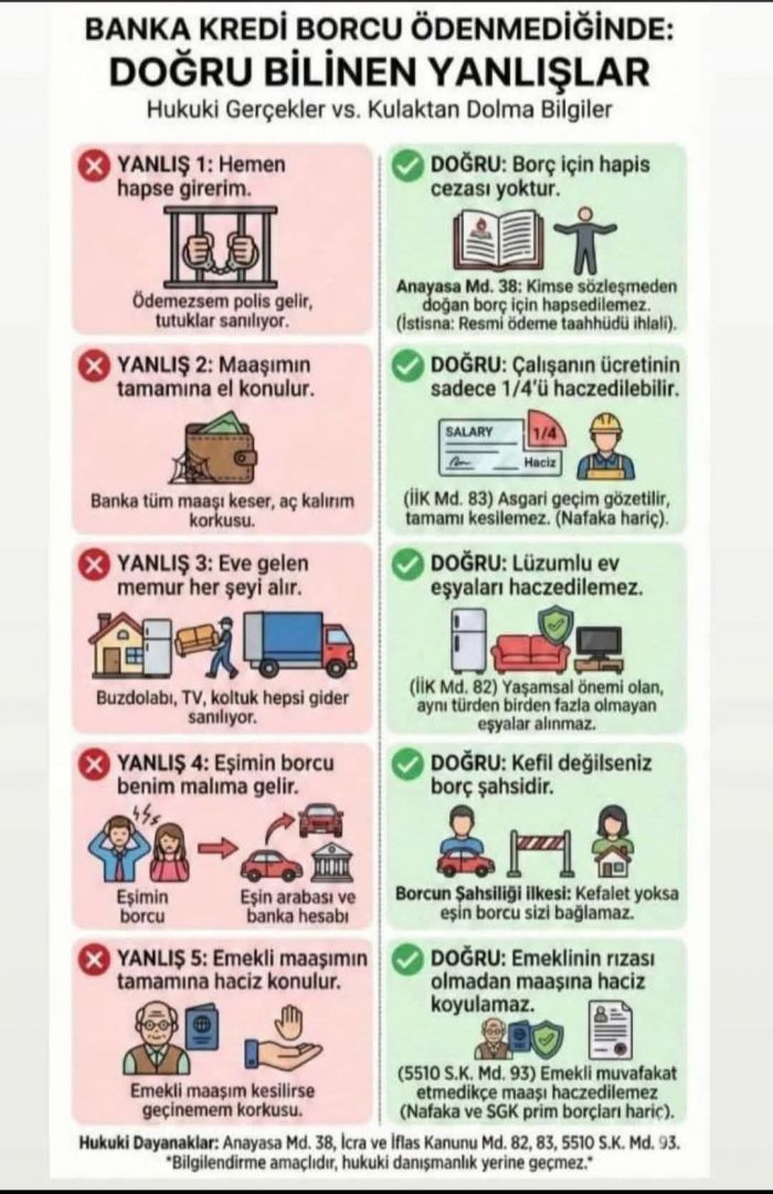 Bankadan kullanılan kredi veya kredi kartı borçlarının ödenmemesi durumunda birçok vatandaş yanlış bilgiler nedeniyle paniğe kapılabiliyor. Oysa hukuki süreçler, toplumd