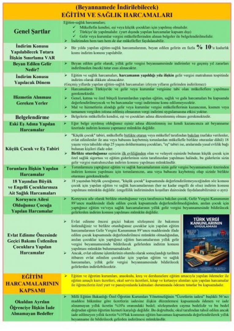 Gelir Vergisi Beyannamesi veren mükellefler için eğitim ve sağlık harcamaları, belirli şartlar sağlandığında vergi matrahından indirilebilmektedir. Bu uygulama, vatandaşların eğitim ve sağ