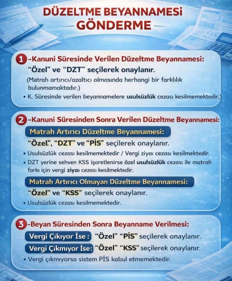 Vergi beyannamelerinde zaman zaman hata veya eksiklikler oluşabilmektedir. Bu durumlarda mükellefler tarafından “düzeltme beyannamesi” verilmesi mümkündür. Ancak d