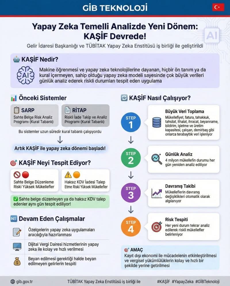 Gelir İdaresi Başkanlığı (GİB), vergi denetim ve analiz süreçlerinde yapay zekâ destekli yeni bir döneme geçti. TÜBİTAK Yapay Zekâ Enstitüsü iş birli
